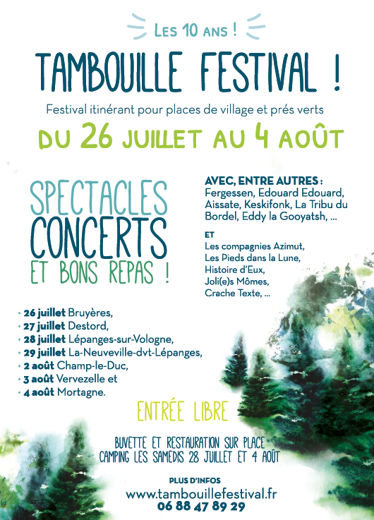 Plus d’informations : www.tambouillefestival.fr ou 06 88 47 89 29