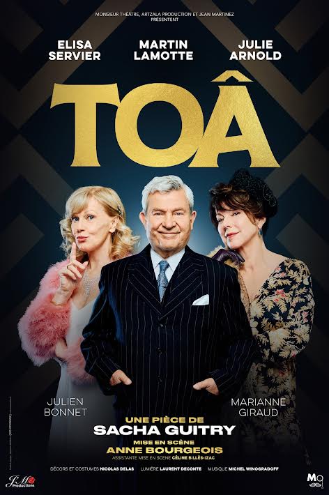 Avec Toâ, Sacha Guitry signe une comédie pétillante où la frontière entre vie réelle et fiction se brouille. L’auteur Michel Desnoyer transforme sa rupture amoureuse en pièce de théâtre… jusqu’à ce que son ex-compagne surgisse en pleine représentation. Portée par un trio d’acteurs éclatant — Martin Lamotte, Julie Arnold et Elisa Servier — et la mise en scène d’Anne Bourgeois, cette pièce propose un théâtre vif, drôle et délicieusement acide.