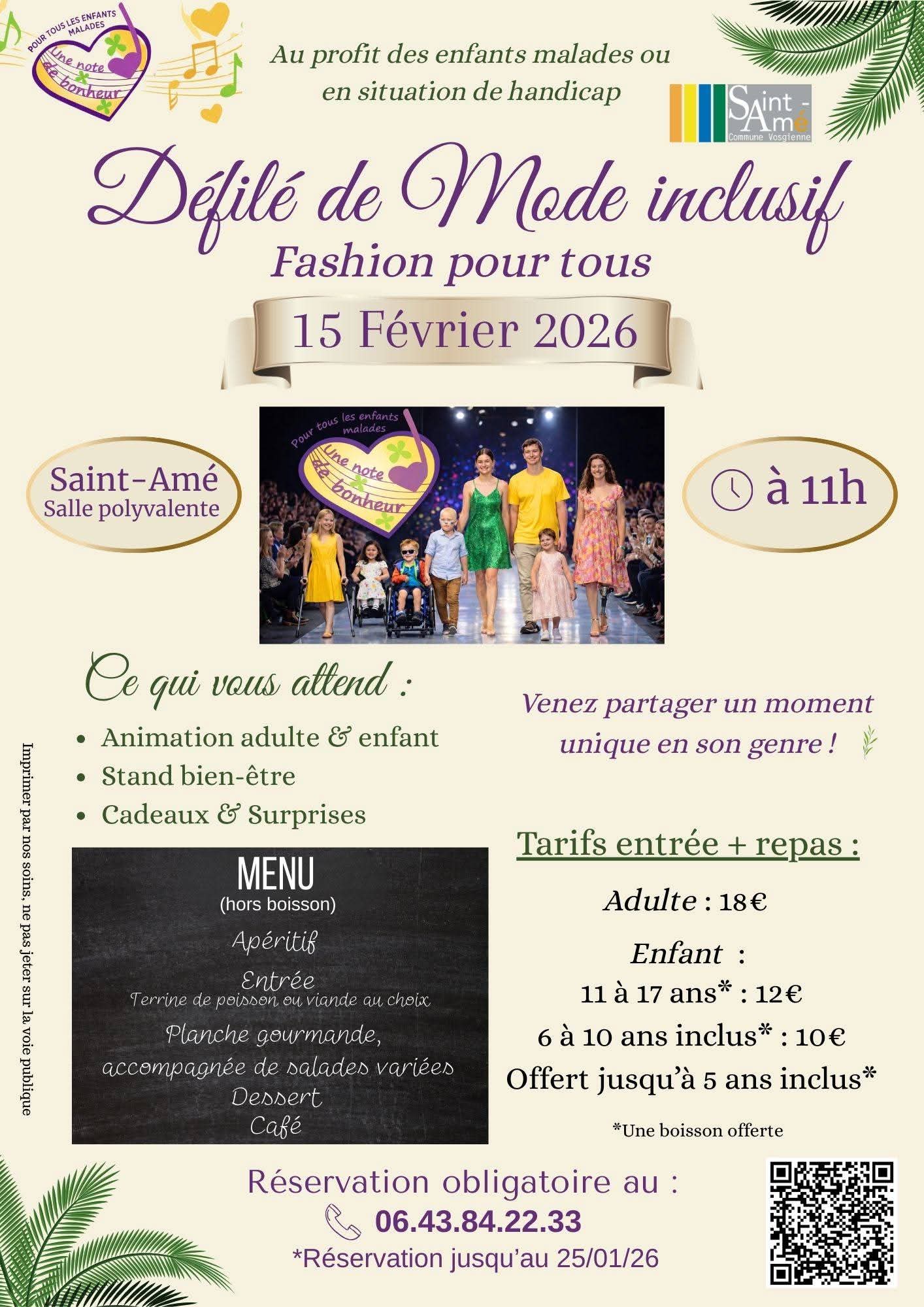 L’association Une note de bonheur organise, le 15 février à Saint-Amé, son tout premier défilé de mode inclusif. Un événement solidaire réunissant personnes valides et en situation de handicap, avec l’ambition d’offrir une parenthèse enchantée, de créer du lien social et de porter un autre regard sur la maladie et le handicap.