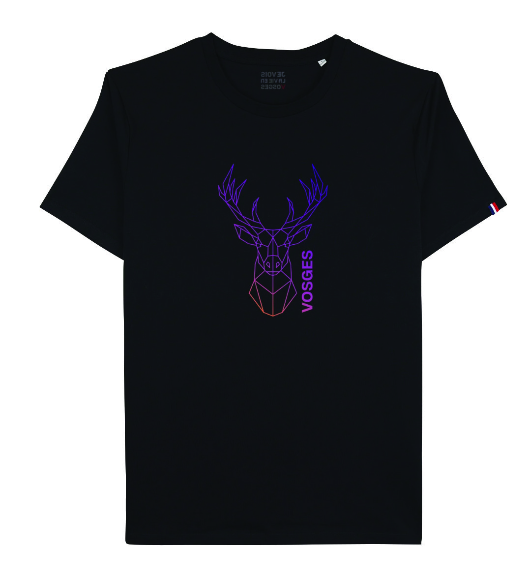 T-shirt mixte en jersey 100 % coton bio confectionné en France et sérigraphié dans les Vosges. Disponible en blanc ou noir, du XS au 3XL. 35 €