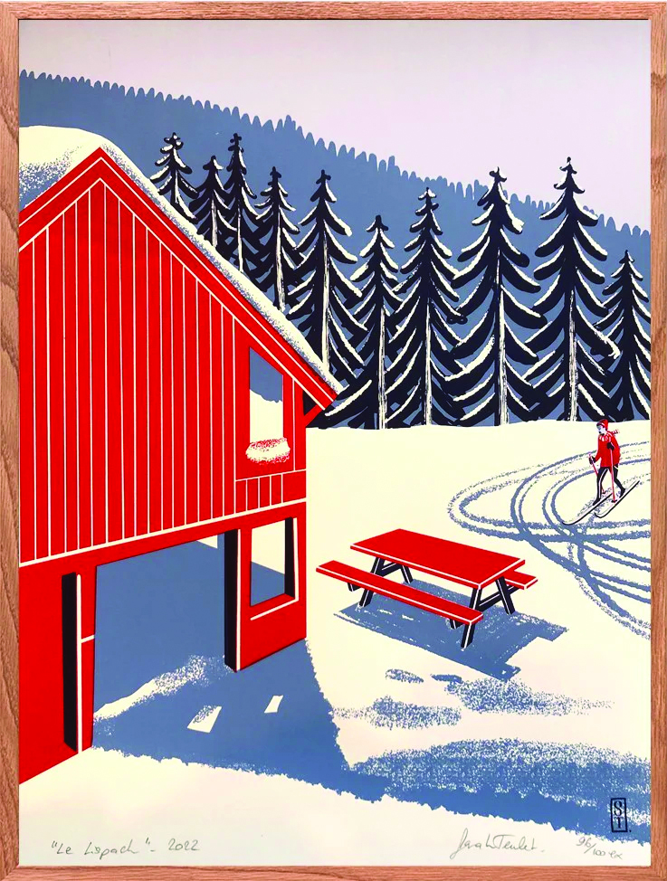 Affiche signée Sarah Teulet Tirage en édition limitée (100 ex. avec certificat d’authenticité). Impression à la main en sérigraphie sur papier vierge Olin régular 300 g sans chlore, avec des encres à l’eau sans solvants. 45 €