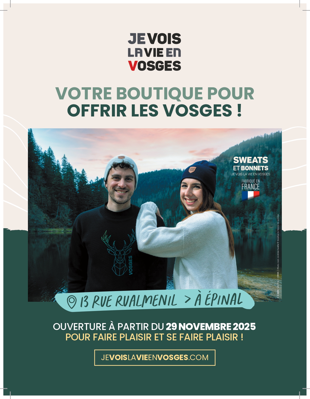 Dès le 29 novembre, trouvez le cadeau idéal dans la boutique éphémère Je Vois la Vie en Vosges 13 rue Rualménil à Épinal ou sur jevoislavieenvosges.com.
