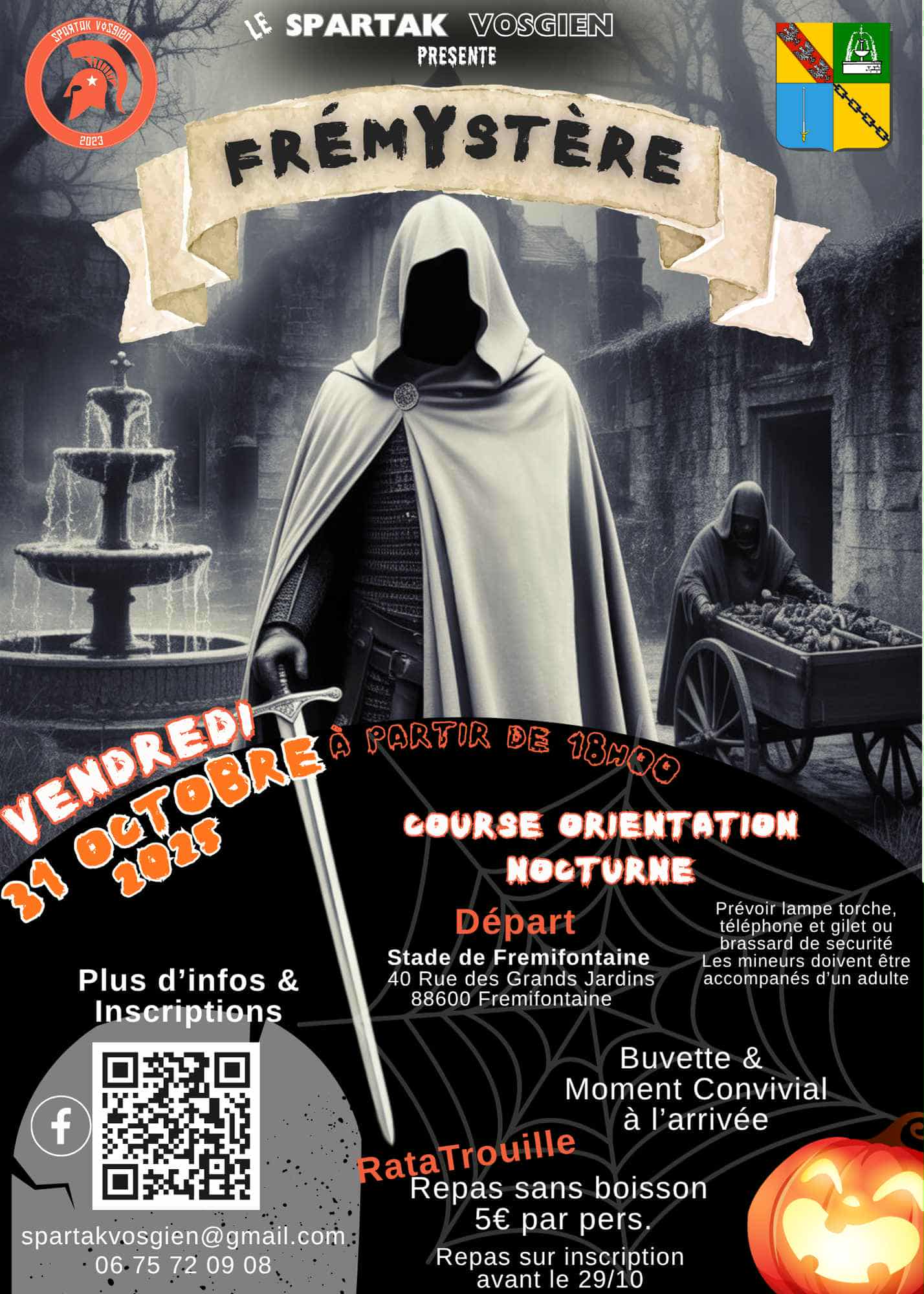 Le Spartak Vosgien organise ce vendredi 31 octobre 2025 une aventure originale à Frémifontaine. Une course d’orientation nocturne, ponctuée d’énigmes et d’ambiances mystérieuses, à vivre en famille ou entre amis.