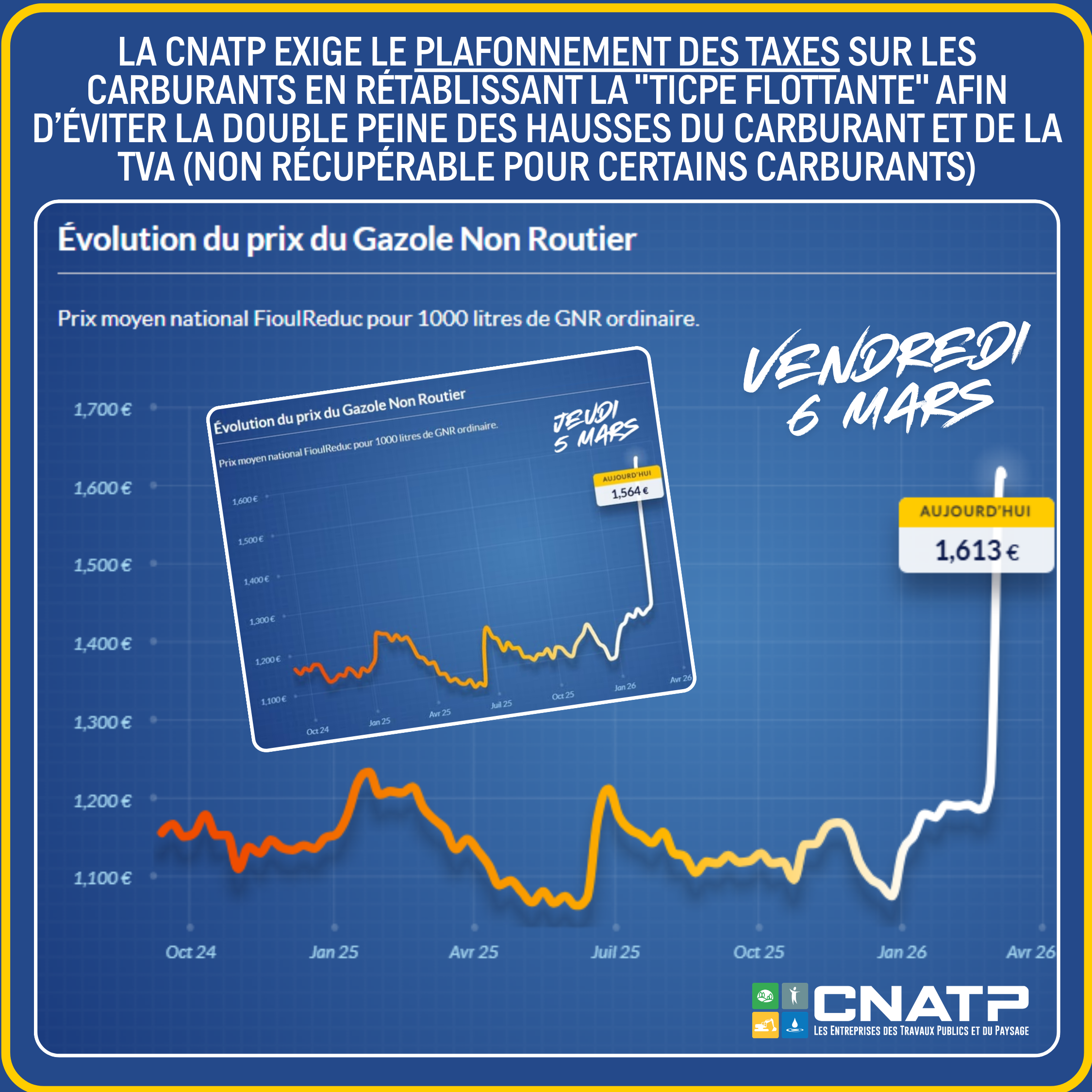 Face à la flambée des prix des carburants, la Chambre nationale de l’artisanat des Travaux publics et du Paysage (CNATP) alerte sur la situation critique des entreprises du secteur. Son président, Pascal Rineau, demande notamment le rétablissement d’une « TICPE flottante » afin d’alléger la pression fiscale qui pèse sur ces professionnels déjà fragilisés.