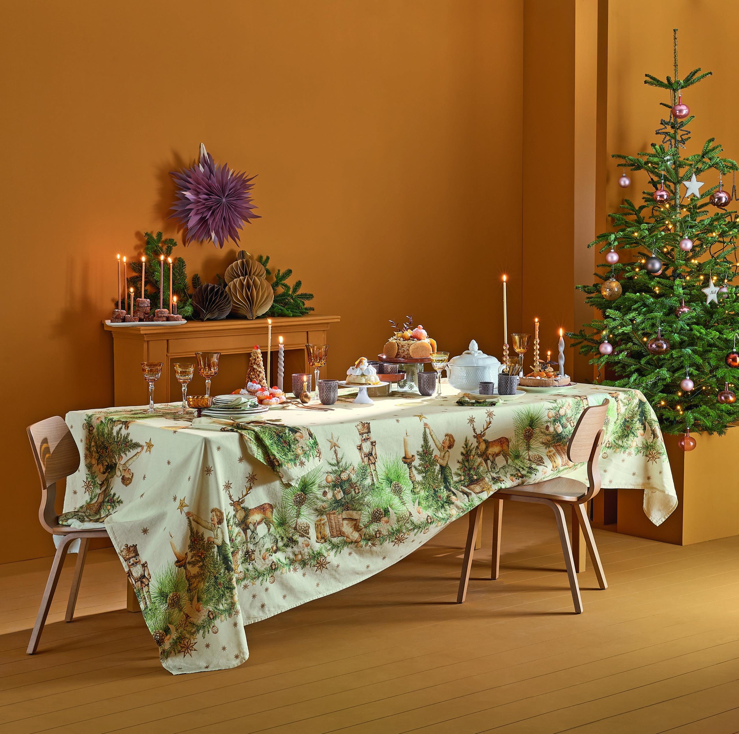 Noël Vintage Doré – Garnier Thiebaut. Nappe en métis lavé 50 % lin – 50 % coton © Garnier Thiebaut