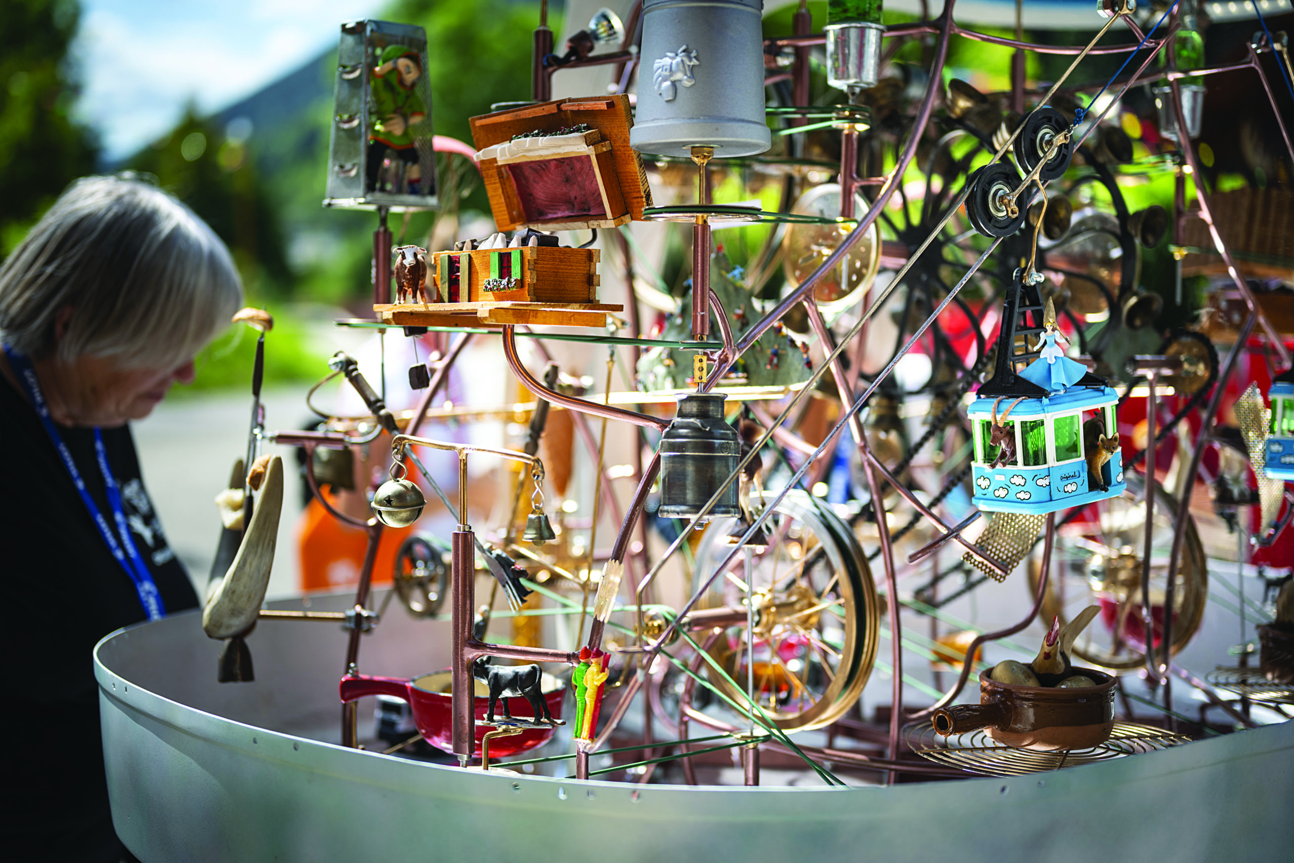Cela commence au Marché de Saint-Nicolas où de curieux manèges entraînent tous les après-midis les enfants dans des voyages étonnants. En musique et en apesanteur avec Le contrevent, un manège en équilibre, Hors du temps avec L’Orgarêve et ses Joyeux nuages, ou dans des contrées fantastiques à bord du Manège des P’tits Bouchons. Enfin, à condition que ces machines à « propulsion parentale » veuillent bien démarrer… Place des Vosges, puis sur le Marché de Saint-Nicolas, attention à la collision musicale ! Le « pianiste à moteur » Macadam Piano avance, recule et improvise au gré des rues et de ses ren- contres… Juste après lui, Le Théâtre de la Toupine fait visiter son cabinet de curiosités ambulant. Une Boule de neige (en vérité un œuf de télécabine à roulettes) abrite de multiples mécaniques de précision. Après ce curieux passage, on entendra les gazouillis de Taratati, une petite fanfare à bêtises aux mélopées de petits piafs farceurs.