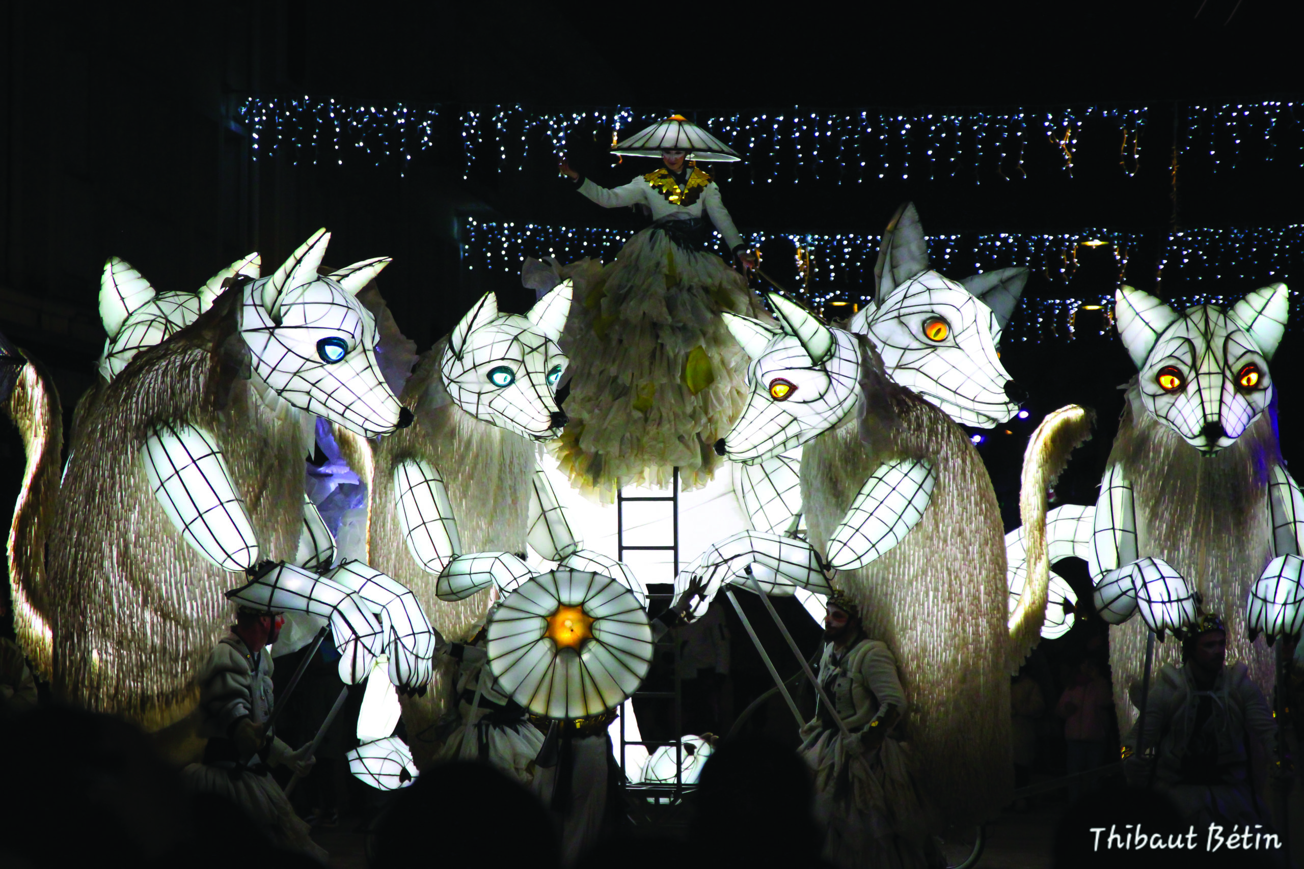 Des êtres mystérieux ont quitté leur habitat naturel. Sortis de la Forêt mouvante de Noël, de facétieux sapins avides d’interaction avec les humains exercent leur curiosité place des Vosges à 14 h, puis au Marché de Saint-Nicolas à 16 h. Autres créatures magiques, les Légendaires renards blancs, se laissent approcher place Pinau à 17 h et 19 h, heure où songes et réalité ne font qu’un, accompagnés de danseurs et d’acrobates porteurs de lumières incandescentes.