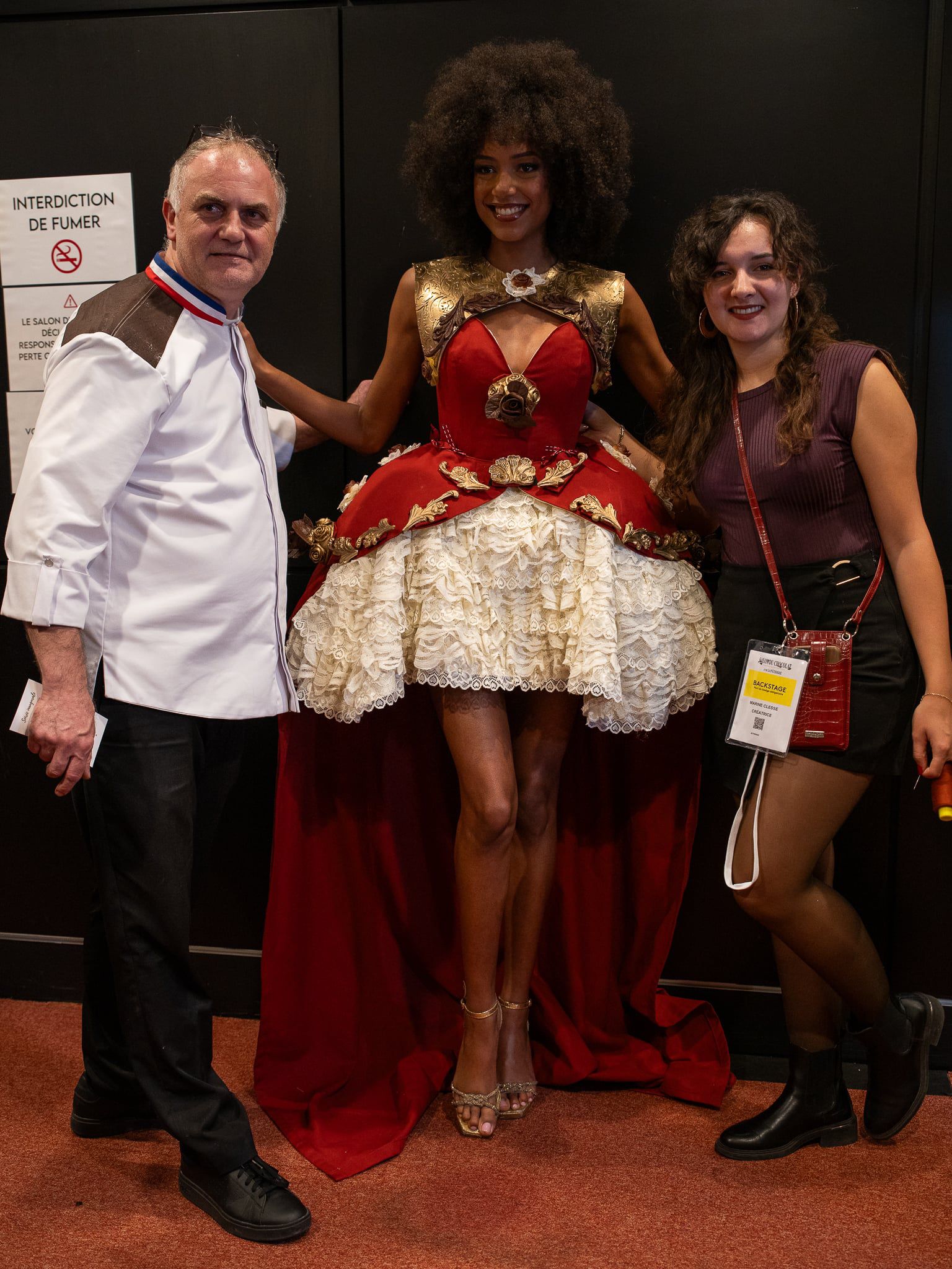 Son mois de novembre débutera à Paris, au Salon du Chocolat (du 29 octobre au 2 novembre), aux côtés du Meilleur Ouvrier de France pâtissier Stéphane Glacier. Pour la troisième année consécutive, elle y crée une tenue chocolatée, mais cette fois-ci pour un homme, le narrateur du défilé. « C’est une première, lors des deux précédentes éditions c’était pour deux femmes. Et nous serons aussi présents durant cinq jours avec un stand où Stéphane présentera ses pâtisseries et ses livres et moi ma marque de vêtements professionnels », explique-t-elle.