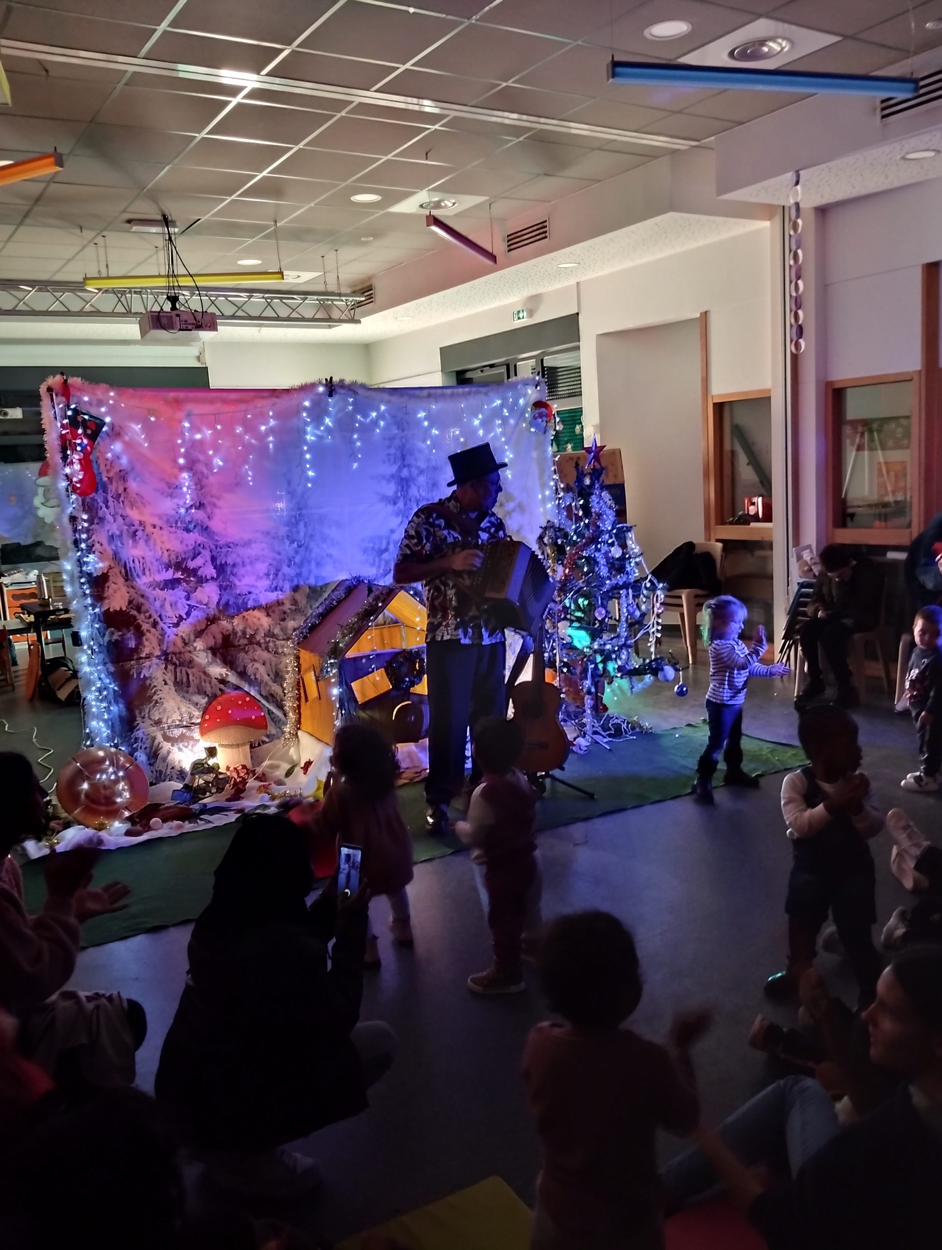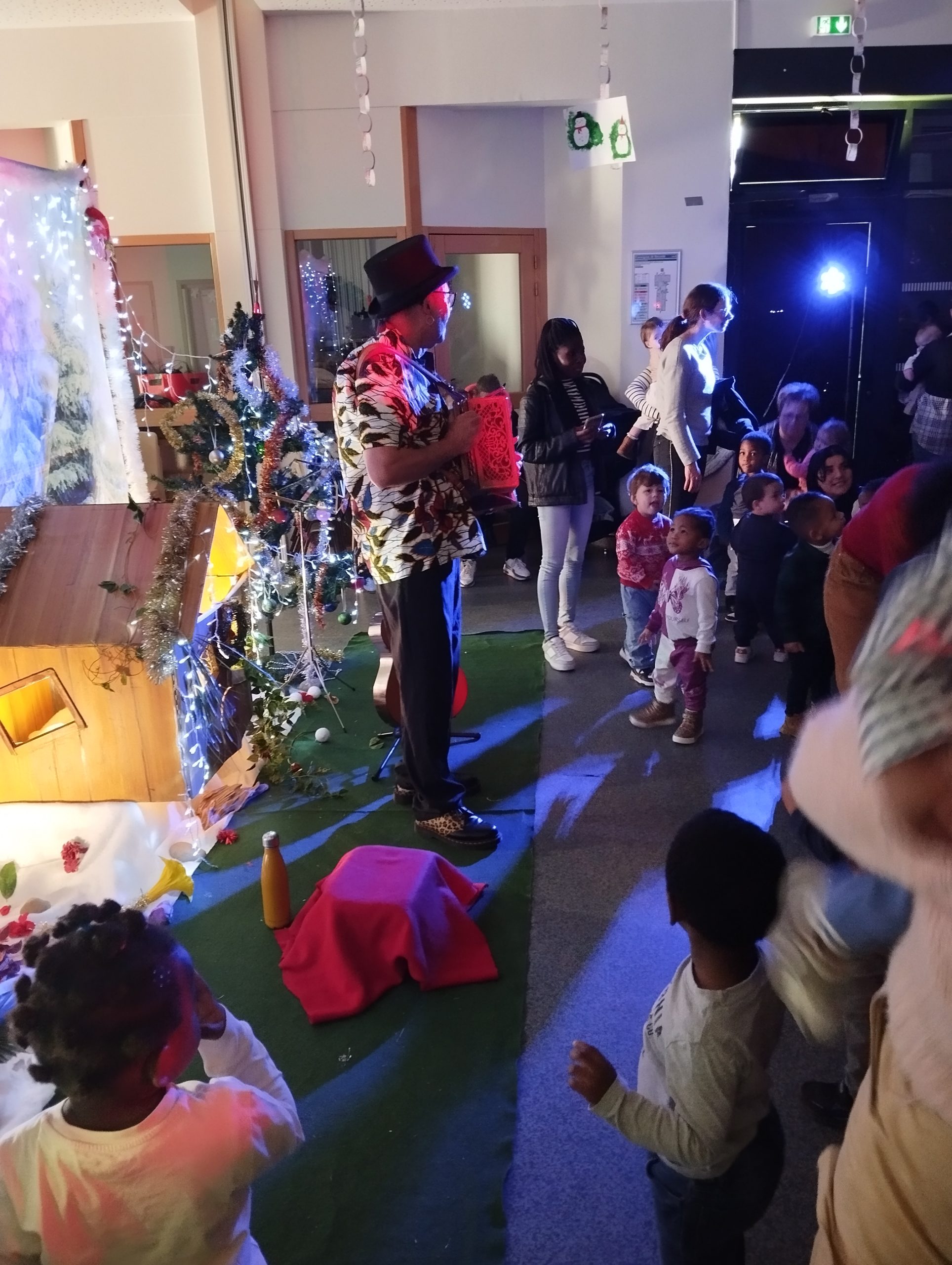 À l’approche des fêtes de fin d’année, le centre social de la Vierge a proposé une animation à destination des jeunes enfants et de leurs familles.. Jeudi 18 décembre, les tout-petits des haltes-garderies du centre social de la Vierge, du centre social Bitola Champbeauvert et du centre social Denise Louis ont assisté au spectacle « Le Noël de Lili Mulot », interprété par Philippe Pochat.