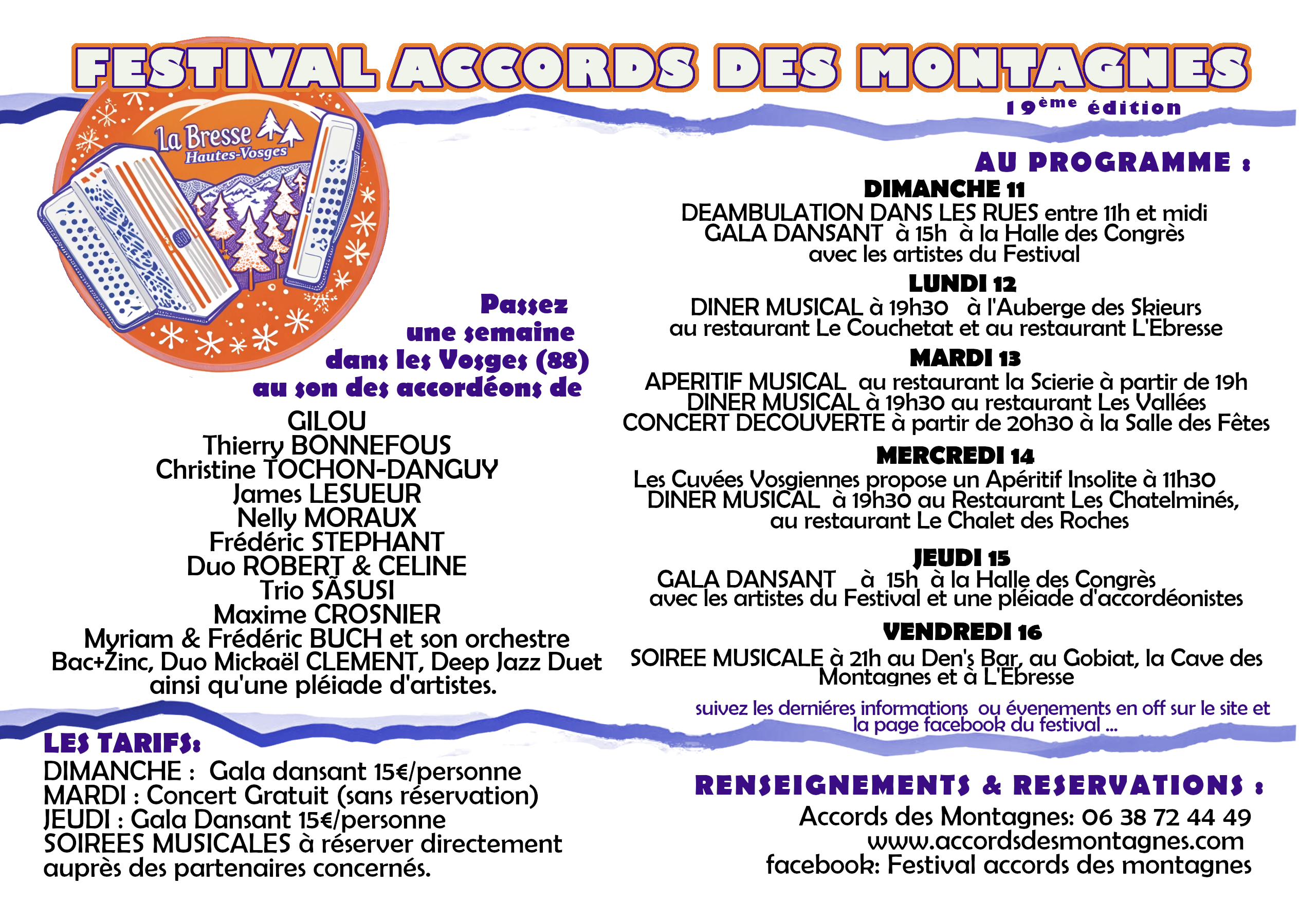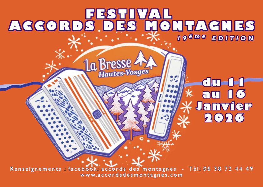 Du dimanche 11 au vendredi 16 janvier 2026, le festival Accords des Montagnes reviendra pour une 19e édition, fidèle à l’esprit qui a fait son succès : défendre l’accordéon sous toutes ses formes tout en animant le cœur du massif vosgien en pleine saison hivernale.