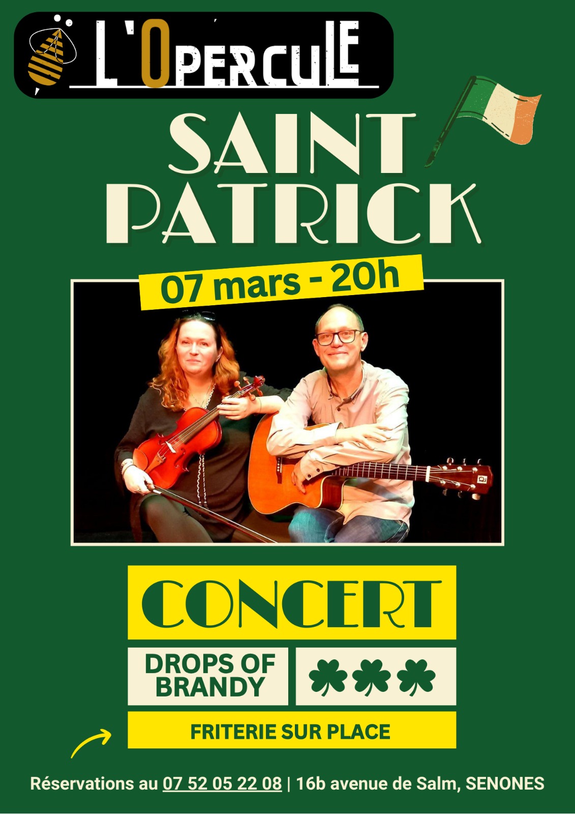 Pour voyager en Irlande sans quitter le territoire, et avec un impact carbone réduit, la brasserie l’Opercule proposera une immersion musicale et gustative au 16b avenue de Salm. Le duo Drops of Brandy assurera l’ambiance avec un concert de musique irlandaise mêlant chants, violon et guitare. Une invitation à découvrir les sonorités celtiques dans un cadre chaleureux.