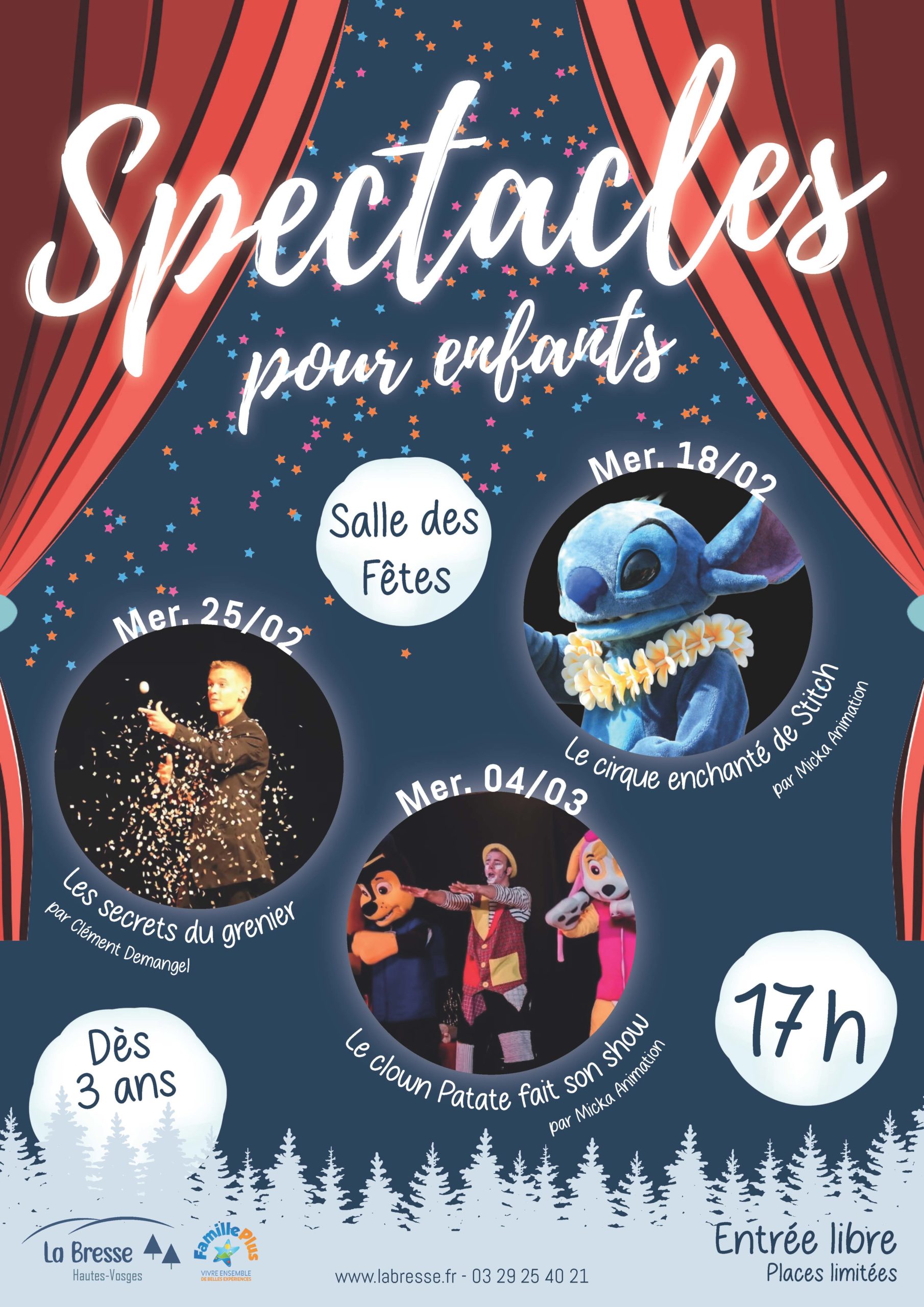 Programmés à 17 heures à la Salle des Fêtes, ces spectacles rythmeront les mercredis des vacances. Le 18 février, « Le cirque enchanté de Stitch », proposé par Micka Animation, ouvrira la série avec un univers festif et coloré. Le 25 février, place à la magie avec « Les secrets du grenier », nouveau spectacle signé Clément Demangel, qui promet mystère et surprises. Enfin, le 4 mars, « Le clown Patate fait son show » accompagné de mascottes viendra conclure ce cycle d’animations sur une note résolument ludique.