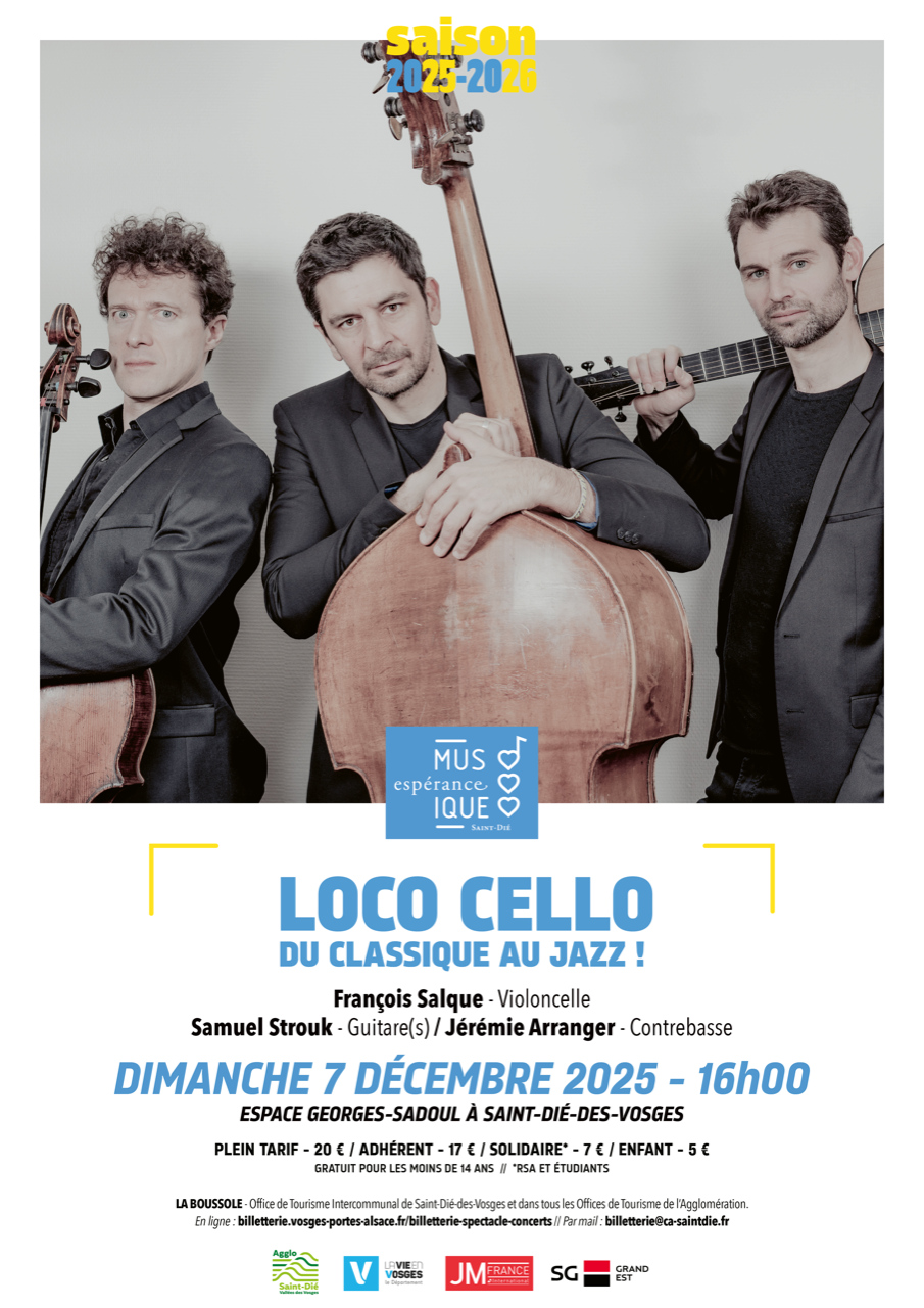 Le 7 décembre, Saint-Dié-des-Vosges accueillera l’ensemble Loco Cello pour un concert mêlant classique, jazz et tango. Porté par le violoncelliste François Salque, le guitariste Samuel Strouk et le contrebassiste Jérémie Arranger, ce programme promet une traversée musicale aussi élégante qu’inattendue.