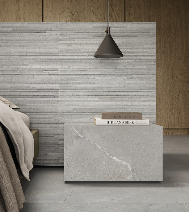 > Opus Spaccatella – Collection Mapierre by Emil ceramica reproduit les aspects imperfections et les irrégularités de la pierre « clivée ».