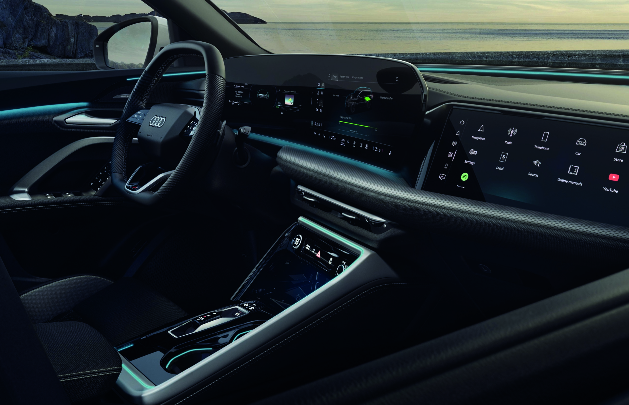 L’Audi Q5 TFSI e dispose d’un habitacle luxueux, finitions haut de gamme, abondance de matériaux de qualité et d’éléments de confort (sièges chauffants, finitions en cuir ou sellerie premium selon version). L’équipement technologique est à la pointe : écran central moderne, connectivité complète, aides à la conduite telles que régulateur adaptatif, système d’alerte et assis- tances diverses pour garantir sérénité et sécurité.