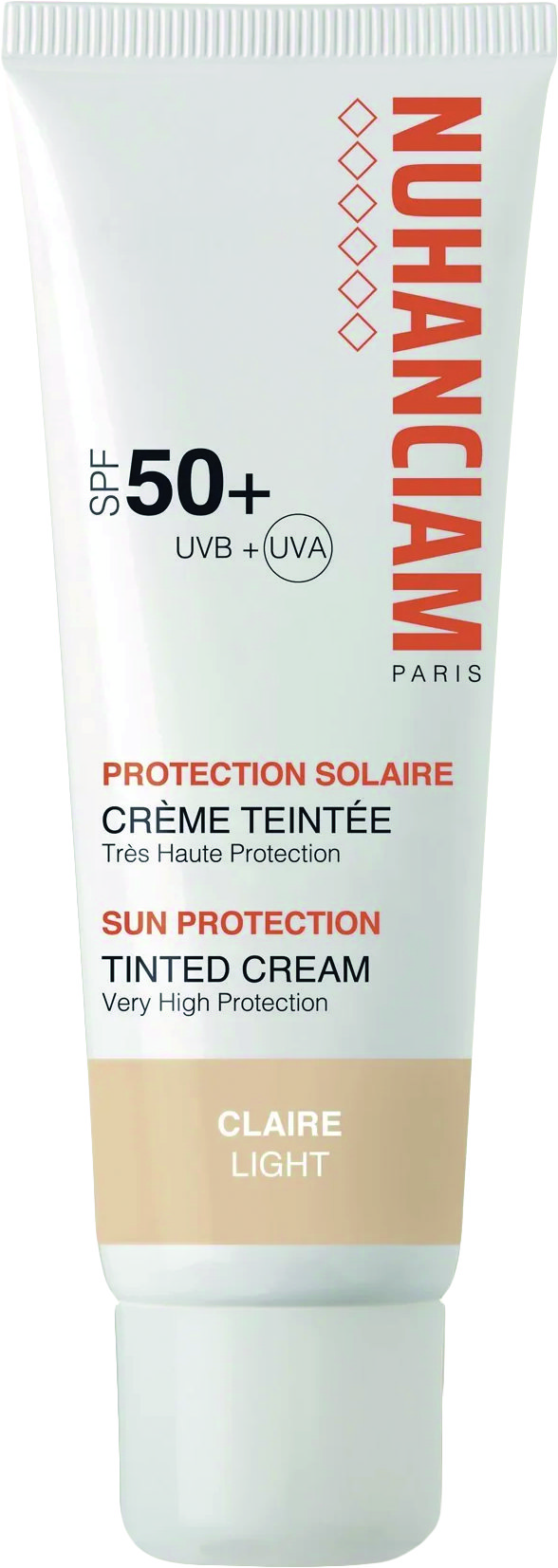 Disponible en trois teintes (claire, medium, foncée, pour les phototypes 1 à 6), elle associe 70 % d’ingrédients d’origine naturelle à 4 filtres solaires photostables dernière génération, garantissant une très haute protection contre les UVA et UVB (indice UVA 1,7 fois supérieur aux exigences européennes), auxquels s’ajoutent les propriétés de la vitamine E (antioxydante) et du Propanediol (hydratant naturel).