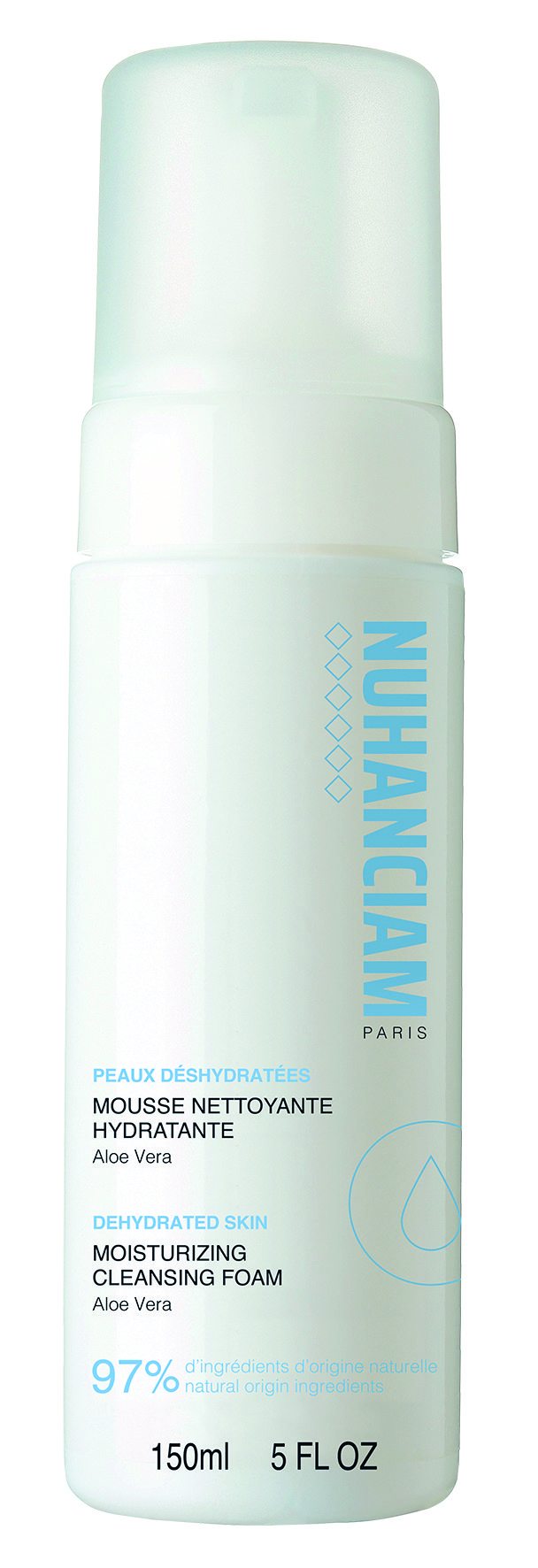 Composée de 97 % d’ingrédients d’ori- gine naturelle, la Mousse Nettoyante Hydratante nettoie le visage et le cou en douceur tout en apportant un confort immédiat aux peaux les plus sèches ou déshydratées. Sa texture onctueuse se transforme en une mousse délicate qui élimine en douceur les impuretés sans jamais agresser la peau. Enrichie en aloé véra apaisant et en diglycérol, sa formule respecte l’équilibre cutané et offre une hydratation immédiate et durable.