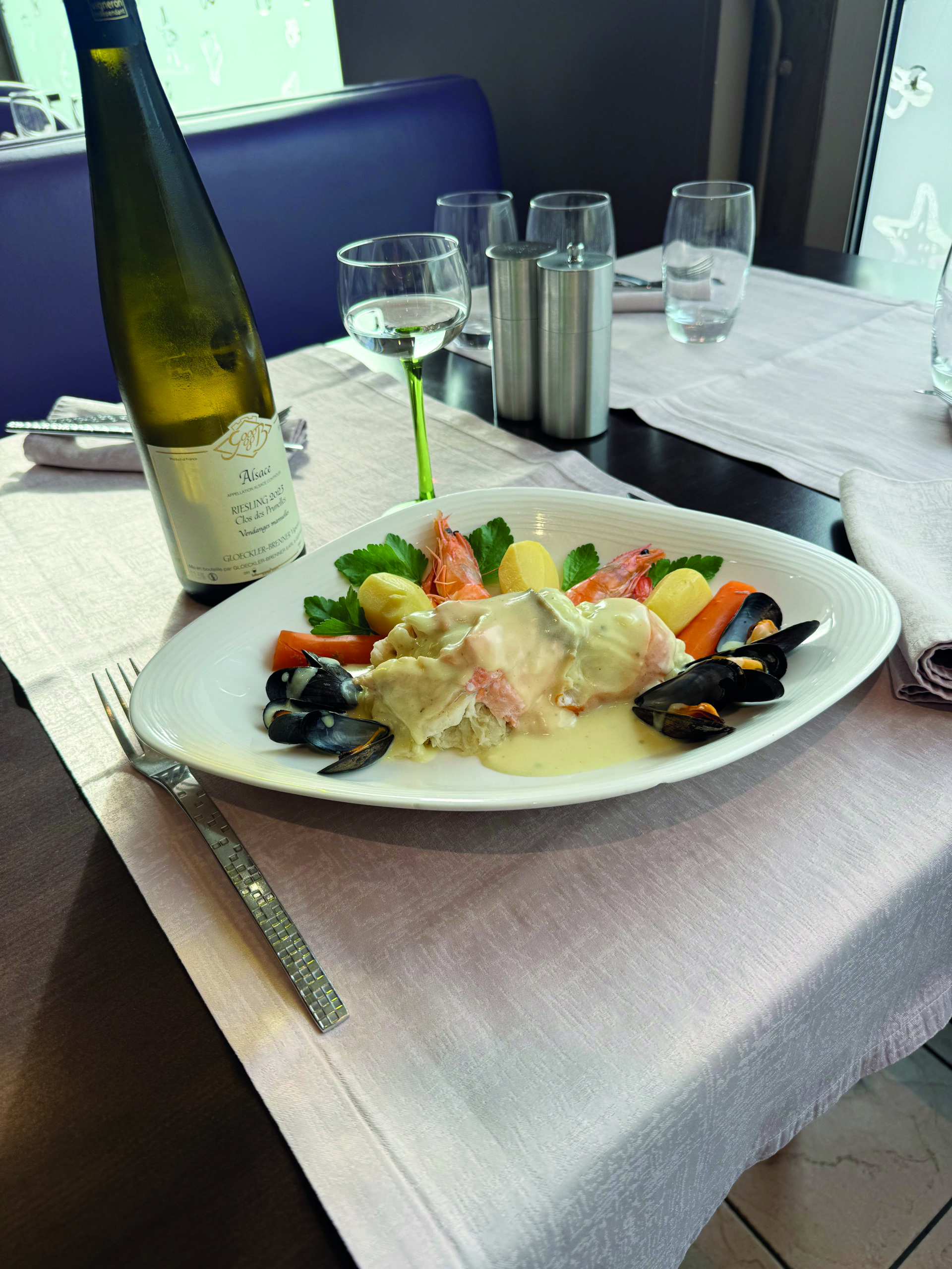 Ainsi, on vient au Bagatelle autant pour ses poissons et crustacés que pour les plats du terroir. Côté mer, nul besoin de descendre à la plage pour retrouver les saveurs des incontournables choucroute de la mer, bouillabaisse ou paella de la mer, ou se faire plaisir avec de jolis poissons frais comme la Parillade, un panaché de poissons rôtis accompagné de croûtons de tapenade, de moules, de crevettes et d’aïoli. Sans oublier les grands rendez-vous des saisons, avec, par exemple, la coquille Saint-Jacques qu’il sublime, dans une assiette folle, en quatre façons.