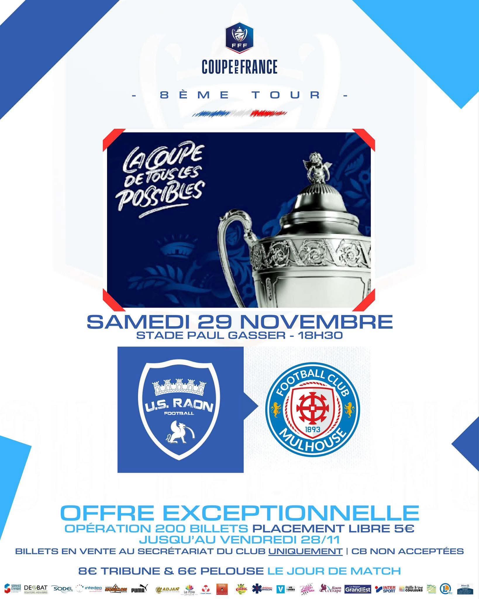 L’US Raon-l’Étape reçoit Mulhouse ce samedi pour un 8e tour de Coupe de France qui pourrait l’ouvrir à un nouveau 32e de finale, échelon marquant l’entrée en lice des clubs de Ligue 1. Porté par son capitaine Omar Hassidou, le club vosgien espère une nouvelle fois s’appuyer sur son leader emblématique pour poursuivre son aventure dans la compétition.