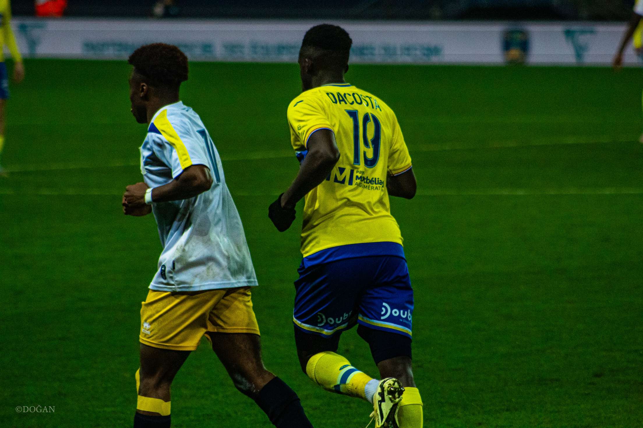 La soirée commence par un événement quelque peu insolite. Monsieur Retail, l’arbitre de la rencontre, a jugé que les couleurs des maillots des deux équipes étaient trop similaires. Ainsi, le FC Sochaux a dû prêter une tenue à son adversaire du soir. Voilà pour les coulisses. Sur le plan sportif, les Vosgiens ne partaient pas favoris face à une équipe sochalienne n’ayant subi qu’une seule défaite lors de ses 12 dernières sorties. Pourtant, sans complexe, devant plus de 10 000 spectateurs, les joueurs du SAS, emmenés par Jérémy Colin qui a endossé le brassard de capitaine en l’absence de Sébastien Chère, ont su prendre le contrôle du match dès le début. Après un premier quart d’heure d’observation, le SAS ouvre le score grâce à une superbe action collective. Bokelé transmet la balle à Coulibaly, qui talonne à Labissière pour une frappe imparable en pleine lucarne ! (0-1, 16′). Ce deuxième but en deux rencontres de l’international haïtien renforce la confiance de toute une équipe visiteuse qui n’en manquait pas, elle qui reste sur deux succès de rang après sa victoire contre Goal FC et Cholet.