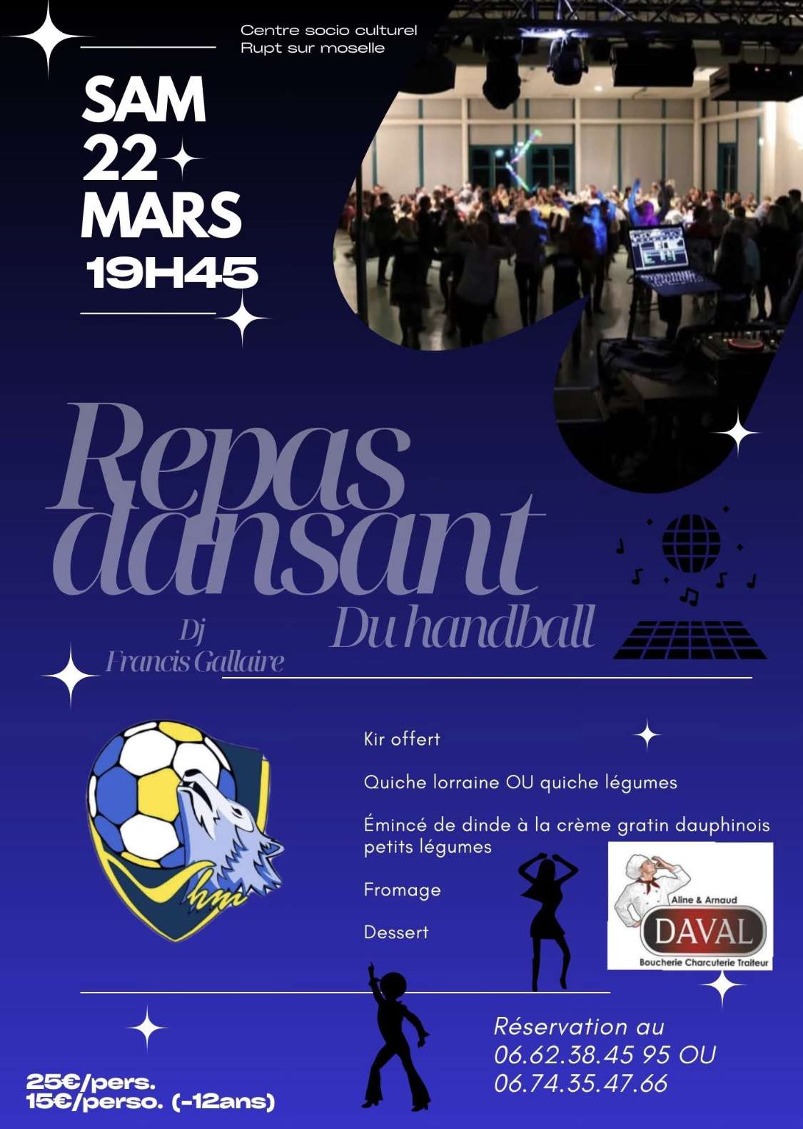 En dehors des terrains, le club organise un grand repas dansant le samedi 22 mars à partir de 19h45 au centre socioculturel de Rupt-sur-Moselle. Les réservations affluent rapidement, et les places sont limitées !