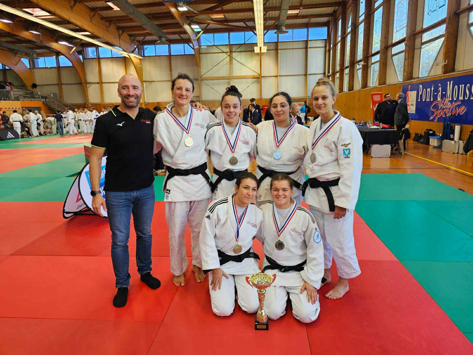 Du côté de Vosges Judo, les deux équipes – masculine et féminine – décrochent une magnifique 2e place chacune, synonyme de qualification nationale. Les féminines, engagées dans une poule de trois, s’imposent 3-2 face au JC Neufchâteau avant de s’incliner sur le même score contre Marnaval Saint-Dizier 52. Les garçons, quant à eux, réalisent un superbe parcours : victoire en huitième de finale contre Marnaval Saint-Dizier 52 (3-2), puis en quart contre ACS Peugeot Mulhouse (4-1) et en demi-finale contre Juniville 2 (3-2). Ils s’inclinent finalement en finale face à Juniville 1 (1-4).