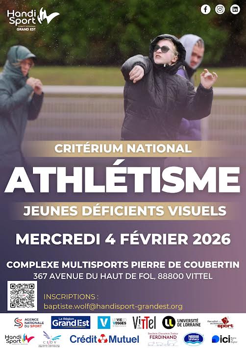 La 36e édition du Critérium national d’athlétisme Handisport destiné aux jeunes déficients visuels se tiendra mercredi 4 février 2026 au Centre de préparation omnisports de Vittel. Une journée placée sous le signe du sport, de l’inclusion et du dépassement de soi.